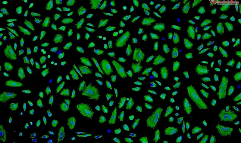 人羊膜上皮细胞(HAEpiC)提取于人羊膜组织,于原代冻存。每管含有细胞数>5×105 cells/ml,此细胞通过Cytokeratin-18, Cytokeratin-19和Vimentin免疫荧光染色验证,经测试不含有HIV-1、HBV、HCV、支原体、细菌、酵母和真菌。