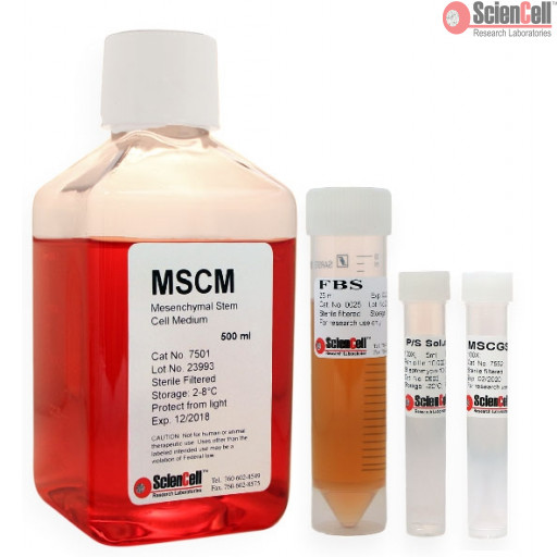 当与间充质干细胞生长补充剂(MSCGS, Cat #7552)和25 ml胎牛血清(FBS)一起使用时,是设计用于正常间充质干细胞体外最佳生长的完整培养基。这是一种无菌液体培养基,含有必需和非必需氨基酸、维生素、有机和无机化合物、激素、生长因子、微量矿物质和低浓度胎牛血清(5%)。介质是HEPES和碳酸氢盐缓冲,在5% CO2/95%空气的培养箱中平衡时,pH值为7.4。培养基配方(定量和定性)提供最佳平衡的营养环境,选择性地支持正常间充质干细胞在体外的生长。